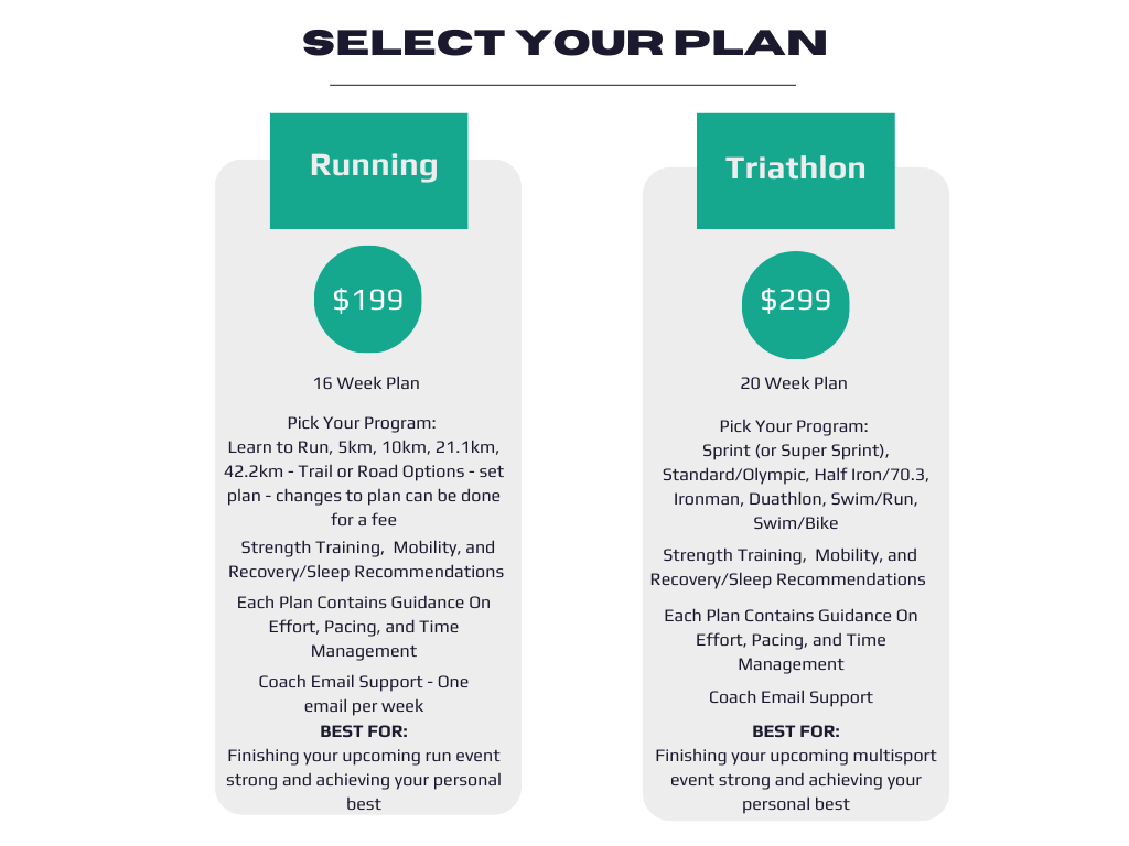 NOTE: Email support is one email per week. The athlete can request changes to their plan for an additional fee.